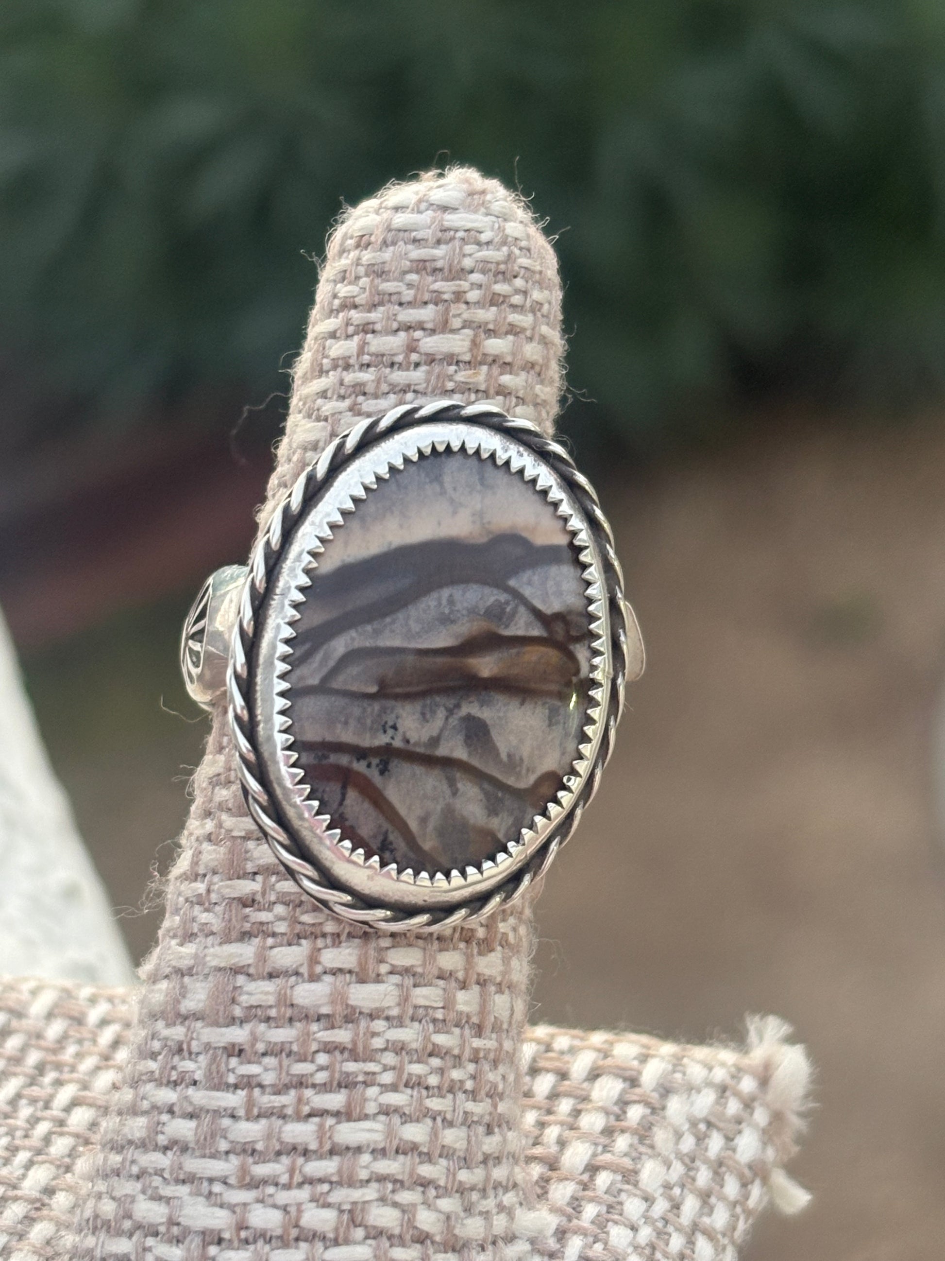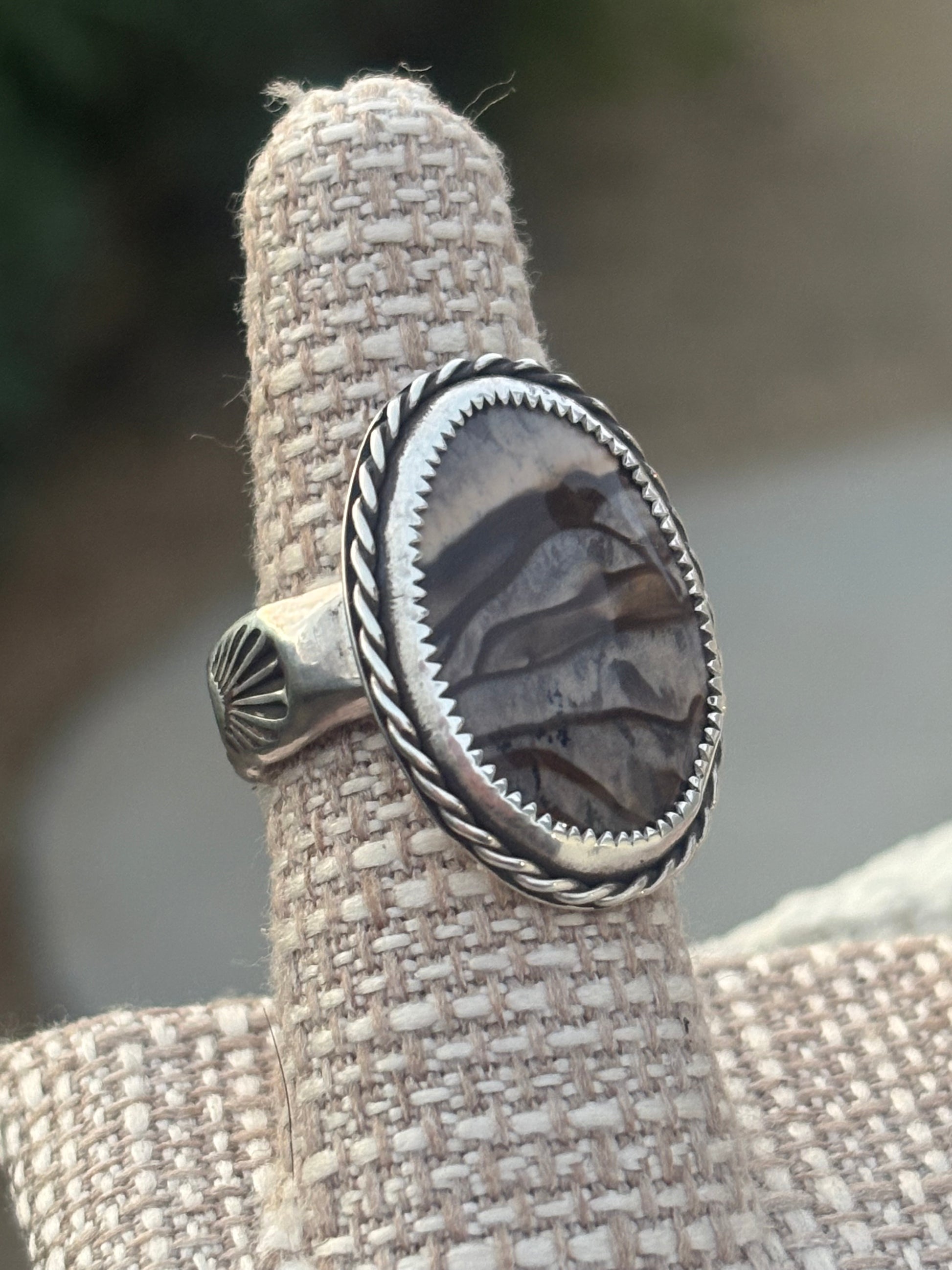 Picture Jasper Sterling Silver Stamped Ring Size 8 Chunky Stamped Statement Ring, Handmade Gorgeous Picture Jasper